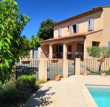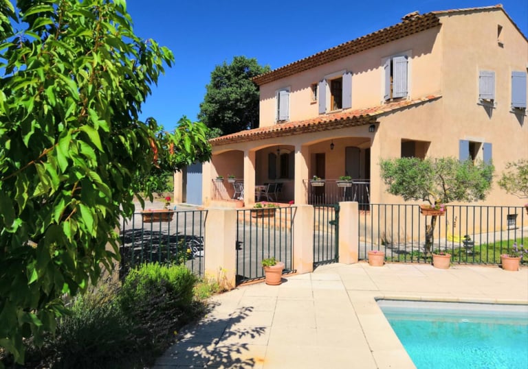 Une bastide provençale charmante avec piscine privée, terrasse ensoleillée et espaces de loisirs pour des vacances inoubliables.